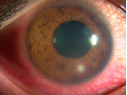 角膜の酸素不足が原因で、本来は血管のない角膜に、酸素を供給するために血管が伸びてきた状態です。